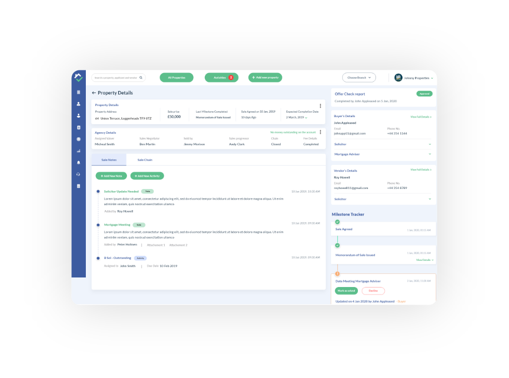 With built in automation buyers/ sellers and solicitors are prompted to update the progress of the sale, only getting the agent involved when no response is given. Every time a milestone completes all parties are notified resulting in continual updates being communicated to everybody involved.